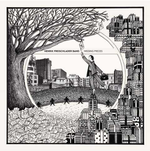 Am 23. Dezember 2020 brachte der Postbote mir ein Päckchen, mit dem ich nicht gerechnet hatte. Vor einigen Wochen hatte ich nämlich an einer Verlosung des Musikmagazins „bluesnews“ teilgenommen. Zu gewinnen gab es eine CD von Henrik Freischlader. Tja, und seitdem ertönen seit einigen Tagen die Klänge von „Missing Pieces“ aus den Boxen meiner Anlage. Dem Päckchen fügte Henrik Freischlader noch ein paar persönliche Zeilen, einige sehr schöne Postkarten und Aufkleber der Band bei. Bevor ich mich zur Musik äußere möchte ich aber die außergewöhnlich schöne künstlerische und wertige Gestaltung des Albums hervorheben. Zu sehen ist ein Mann, der auf der Spitze eines Geschenkberges steht und versucht mühevoll eine Banknote von einem (Geld)baum zu ergattern. Unter ihm liegen hingegen bereits jede Menge Banknoten. Er will halt noch das „fehlende Stück“. Die Frontseite ist teilweise filigran ausgestanzt. Innenliegend im Cover befinden sich Kärtchen mit Bildern und den Songtexten, mit denen man die Titelseite des Albums nach eigenem Belieben umgestalten kann. Ich habe selten so ein schönes Cover in den Händen gehalten.